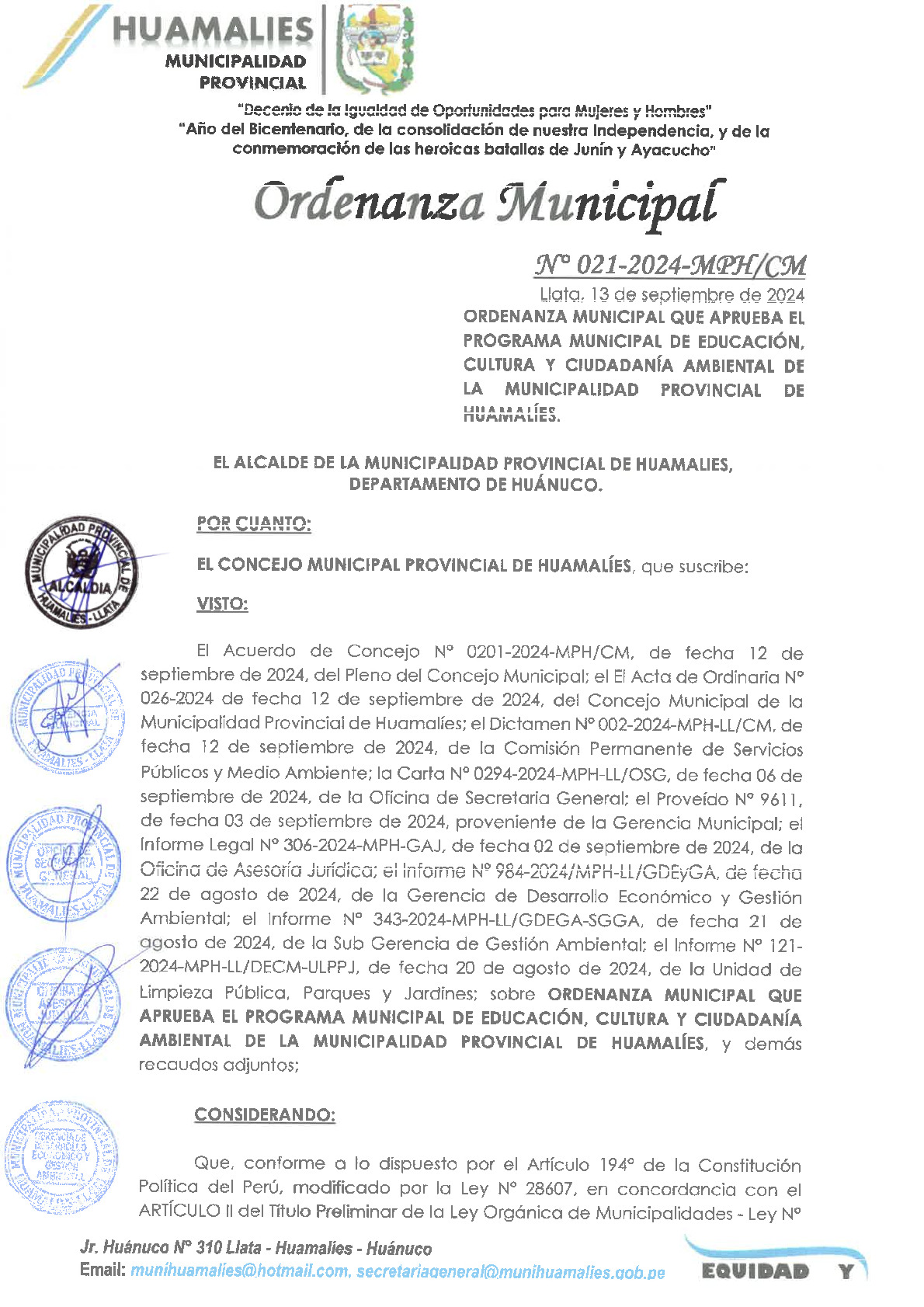 Número de la norma: 021-2024-MPH/CM |