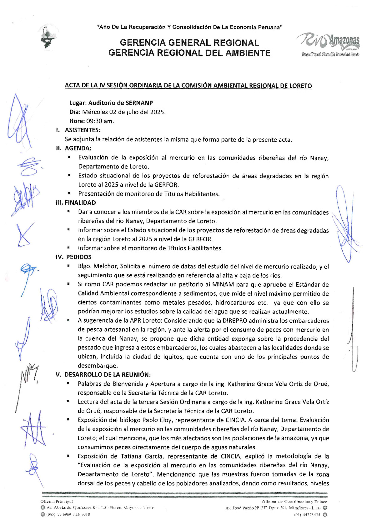 La IV Sesión Ordinaria de la Comisión Ambiental Regional (CAR) Loreto, llevada a cabo el 02 de julio de 2025, se centró en tres problemáticas ambientales críticas de la región: