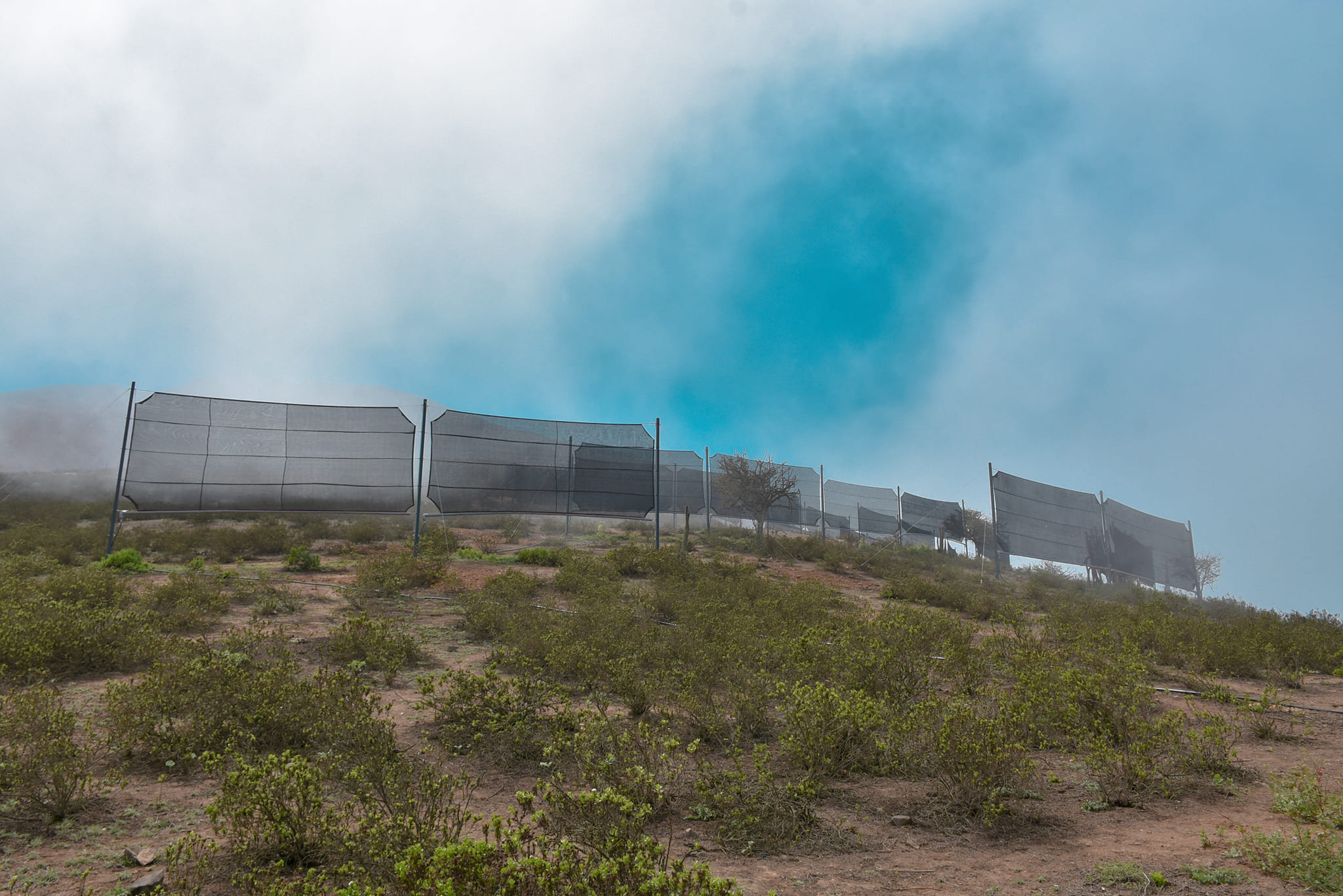 Atrapanieblas para captar las gotas de agua de la neblina presente en el ecosistema costero. ![]()